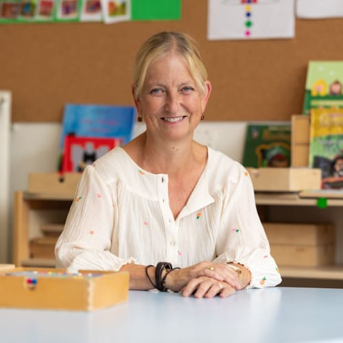 Juf Brigitte is leerkracht van groep 2 en plaatsvervangend directeur.