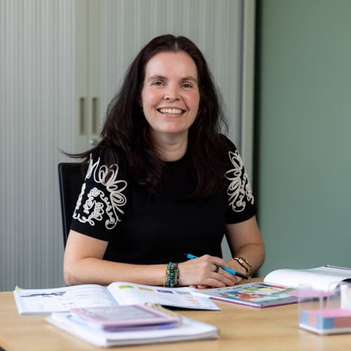 Juf Kim is leerkracht van groep 5 en vertrouwenspersoon.