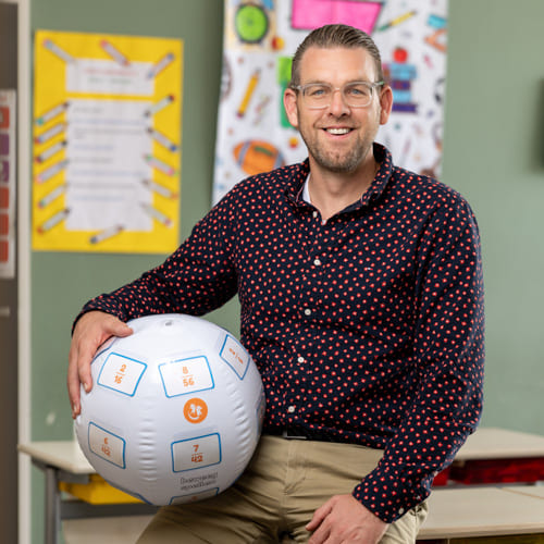 Meneer Raymond is leerkracht van groep 7 en gymdocent.